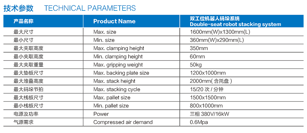 雙工位機(jī)器人碼垛系統(tǒng)由碼垛機(jī)器人,收紙物流,(掉向物流選配)居中排齊物流,輸送物流,拉距物流,整理抬起部,夾墊紙部,機(jī)械碼垛部,護(hù)欄及道閘部組成。